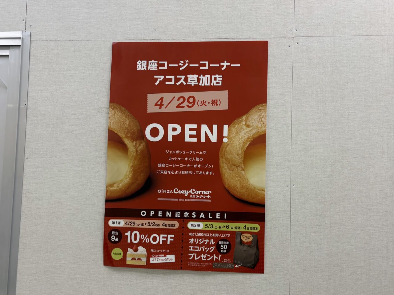 「銀座コージ―コーナー アコス草加店」は、2025年4月29日(火・祝)オープン!