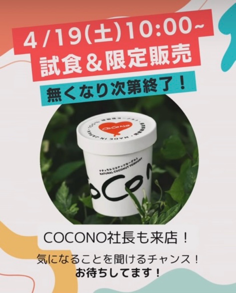 【草加市】91%の人がとっても美味しいと回答!埼玉ではここだけ。今注目の植物性ココナッツヨーグルト「COCONO」限定販売!!