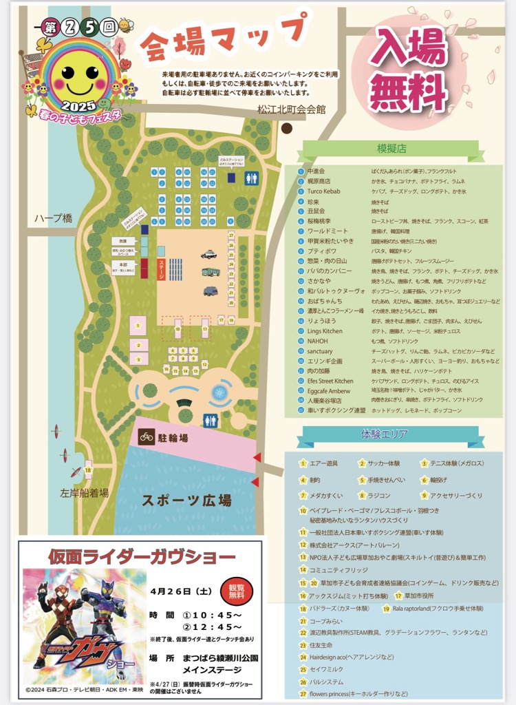 2000年から「まつばら綾瀬川公園」で開催されている「春の子どもフェスタ」がまもなく2025年4月26日(土)に開催されます!