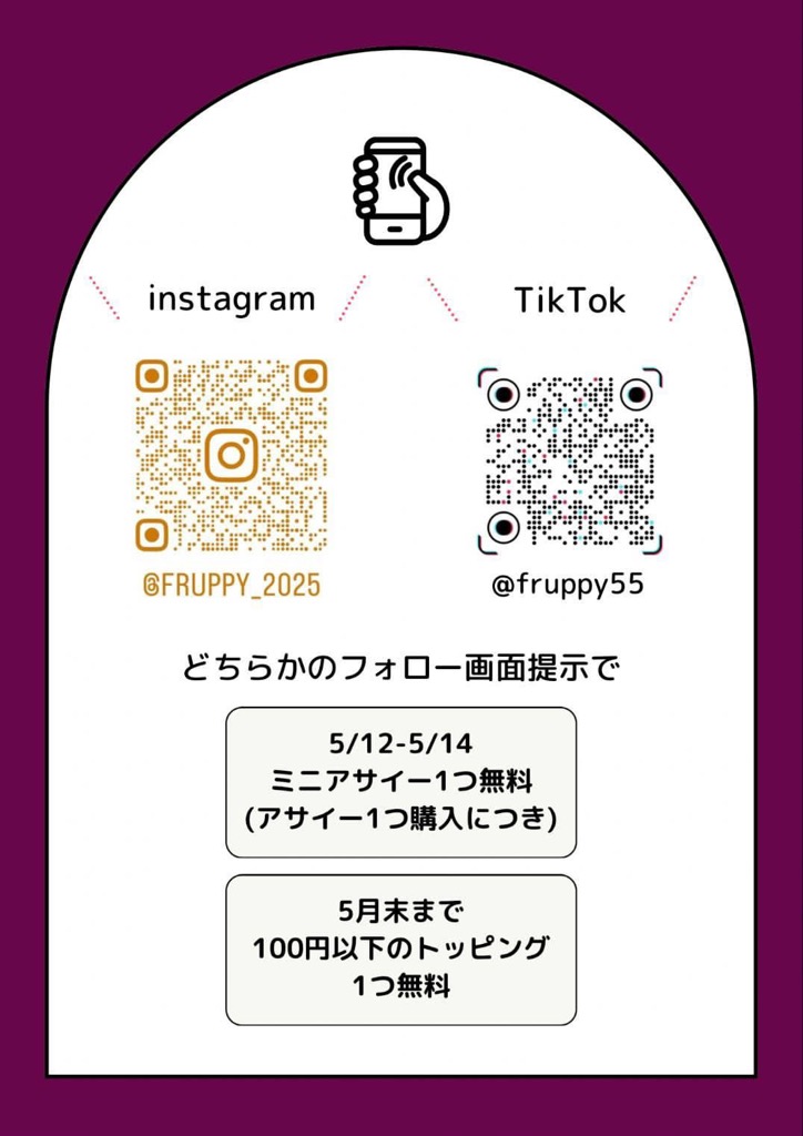 また公式Instagramでは、グリークヨーグルトのメニューも掲載されていますので、気になる方は、是非チェックしてみてくださいね。→「FRUPPY(プルッピー)」公式Instagram/TikTok