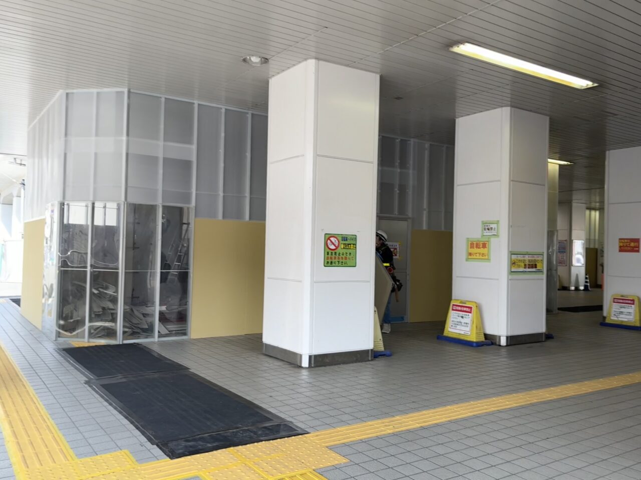 現地へ確認へ行ってみると、改札を出て西口側の一部、「ママのリフォーム谷塚店」があった場所が囲われ、解体工事が行われていました。