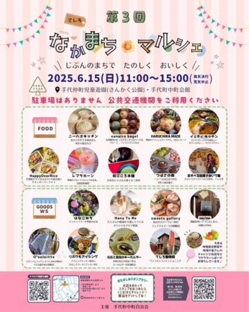 手代2丁目にある「手代仲町児童遊園(さんかく公園)」「手代町中町会館」を会場に、今年2025年も「なかまちマルシェ」が開催されることが分かりました!