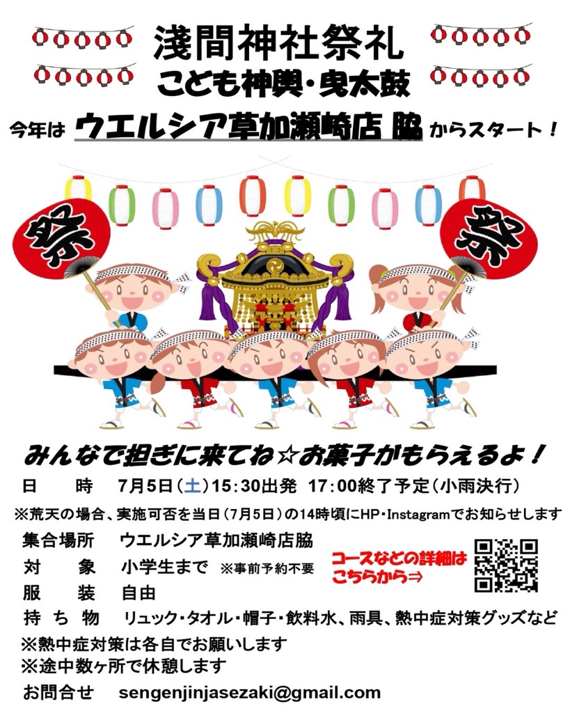 【草加市】賑わう谷塚の夏祭り「淺間神社 例大祭」の詳細をお知らせします!