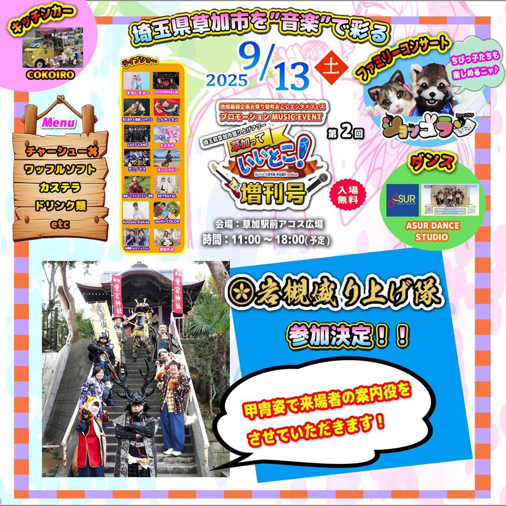 今週末2025年9月13日(土)、第二回埼玉県草加市盛り上げアワー「草加っていいとこ!増刊号」が開催されます!