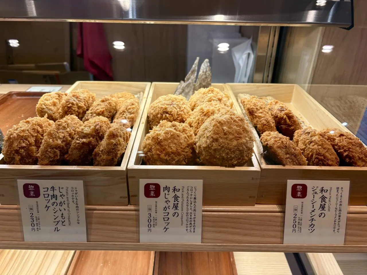 お惣菜は「和食屋の肉じゃがコロッケ」の他にも、「じゃがいもと牛肉のシンプルコロッケ」「和食屋のジューシーメンチカツ」「鶏の塩竜田揚げ」の用意があり、「おにぎり」は「銀鮭の西京焼き」「炙り明太子」「ちりめんとろろ昆布」の順番で人気なんだそうです。