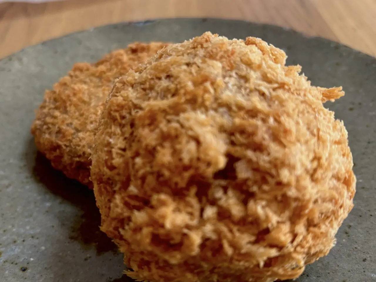 【草加市】そうかコロッケ散歩①おすすめの声が集まる「だし茶漬け+肉うどん えん」の肉じゃがコロッケ。