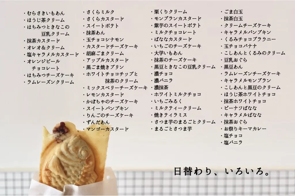 お話を伺ったところ、「経堂 小倉庵」のたい焼きは、北海道えりも産の小豆を使用し毎日お店で炊く自家製あんこが特徴で、70種類以上の日替りたい焼きの販売が予定されています。